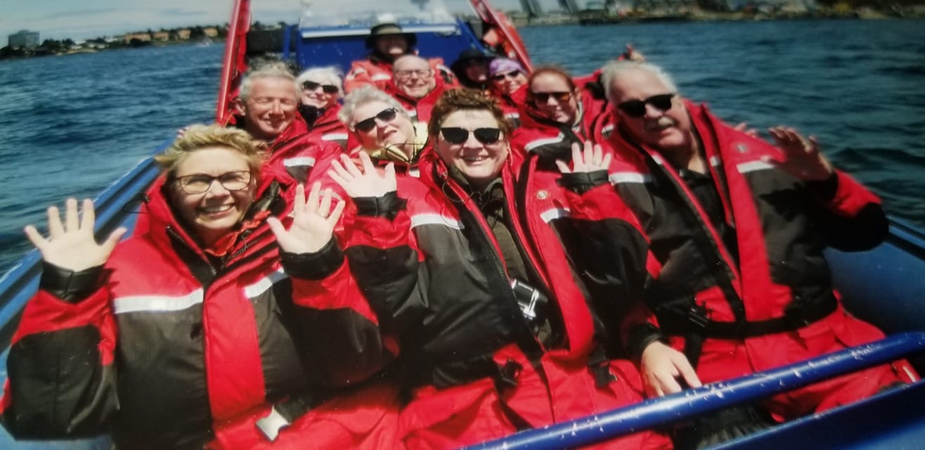 Activities during the Convention were focused on the glorious outdoors of Victoria, British Columbia. On Friday, we had the opportunities to go on the water, either in a Zodiac (photo) or on a larger whale watching vessel. Many of us enjoyed the delights of Afternoon Tea at the Fairmont Empress. On Saturday we visited the world famous Butchart Gardens and shared a delightful (and huge) picnic on the Residence Lawn where we also took our group convention photo (above).