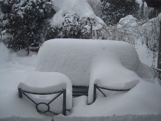 Overnight another 5 or 6 inches came down but as it’s a blizzard, we’re getting a couple of feet in drifts around the house. So far we have power but I gather that lots of people do not. This is now a record breaker for the D.C. area. It’s funny but since I moved here I’ve had three “once in a hundred years” weather events: a hurricane, a flood and now a snowstorm. Is it me???